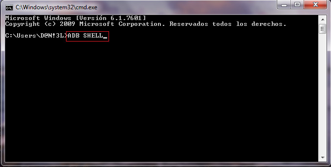 - Une fois ces premières étapes terminées, la console de commande apparaîtra sur l’écran de l’ordinateur. Là, vous devez écrire Adb Shell et pour terminer, vous serez invité à entrer.
