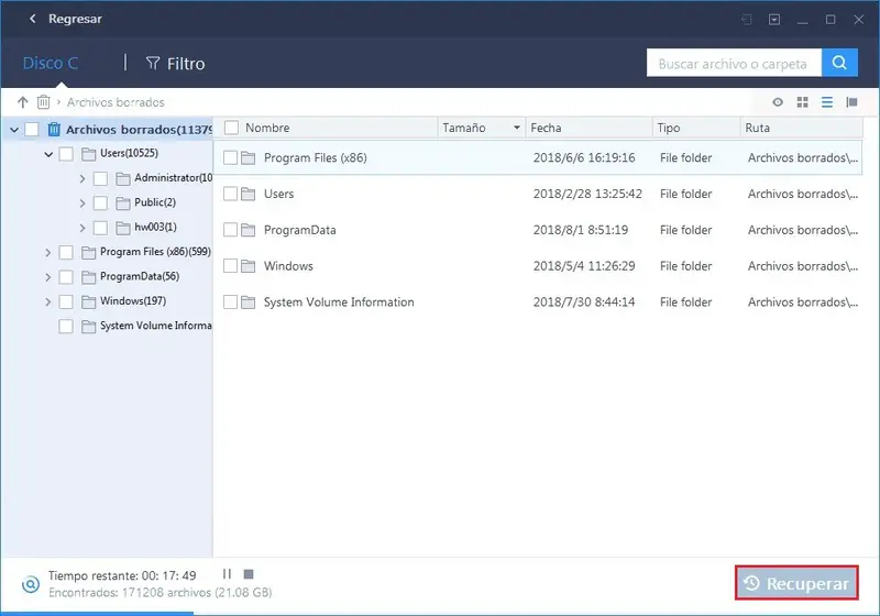 Nous verrons une liste de ces fichiers pouvant être récupérés et nous rechercherons ceux que nous voulons vraiment récupérer. Après avoir sélectionné les fichiers à récupérer, cliquez sur «Récupérer» pour démarrer le processus.