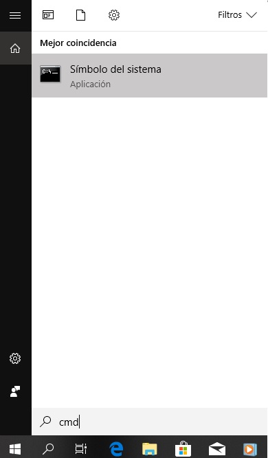 - Entrez l’invite de commande: pour cela, il vous suffit de cliquer sur la touche «Démarrer», et dans l’onglet de recherche, placez le mot «Invite de commandes» ou «Cmd». L’application apparaîtra automatiquement pour s’exécuter.