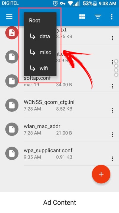 La deuxième option est via n’importe quel gestionnaire de fichiers. Vous pouvez utiliser l’application » ES File Explorer». Grâce à lui, vous accéderez aux dossiers data / wifi ou data / misc / wifi .