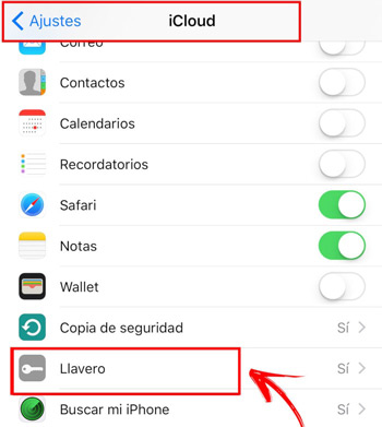 - Dans cette première étape, tout d’abord, vous devez aller dans Paramètres> iCloud> Porte-clés . Dans le cas où «Keychain» n’est pas activé, vous devez.