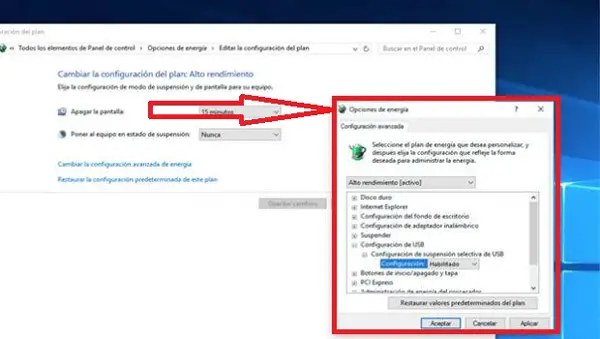 Cela peut être une autre des causes possibles pour lesquelles votre ordinateur ne reconnaît pas votre clé USB, gardez à l’esprit que si le système de suspension sélective est activé sur votre ordinateur, cet appareil ne sera pas reconnu.