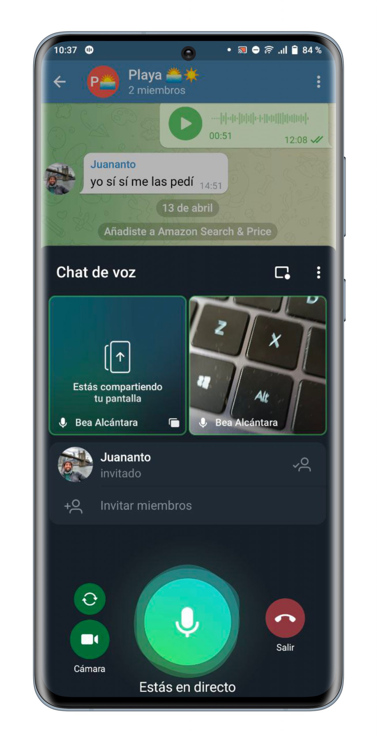 Comme vous pouvez le voir, il n’y a pas de bouton spécifique pour créer un appel vidéo de groupe dans Telegram, mais vous devez d’abord faire un chat vocal et à partir de là partager l’image de votre caméra. Comme toujours, si vous ne voulez pas montrer votre image, vous ne pouvez pas activer l’appareil photo et continuer à participer avec juste votre voix.