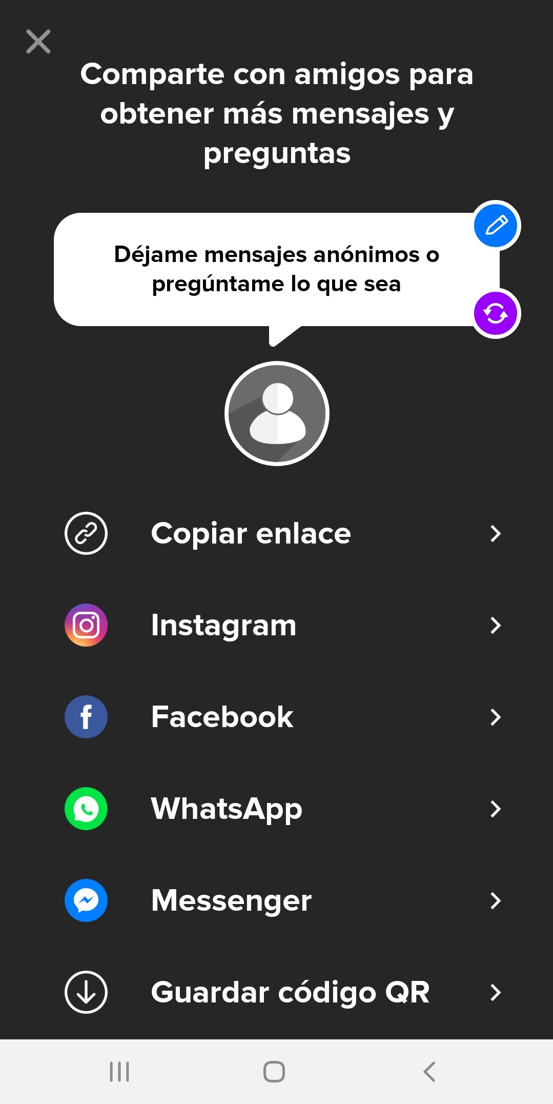 • Si vous cliquez sur l’icône de la loupe, vous verrez que plusieurs options apparaissent. L’un d’eux est le profil de partage , qui vous permettra d’obtenir le lien vers votre profil pour partager, par exemple, dans vos histoires Instagram. Mais partagez également le profil directement sur Facebook, WhatsApp ou Messenger. Et même en obtenir un code QR.