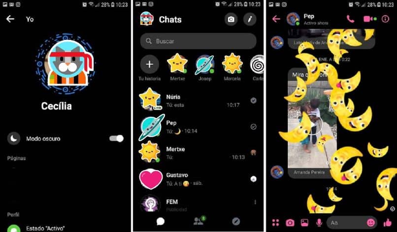 Et vous recevrez un message avec les informations suivantes! Vous avez découvert le mode sombre, vos amis peuvent également l’utiliser s’ils envoient l’émoticône de la lune. Et l’option Activer dans la configuration, cliquez dessus et vous devez suivre les étapes que nous avons expliquées précédemment. Et de cette manière simple, vous pouvez activer le mode sombre dans Facebook Messenger.