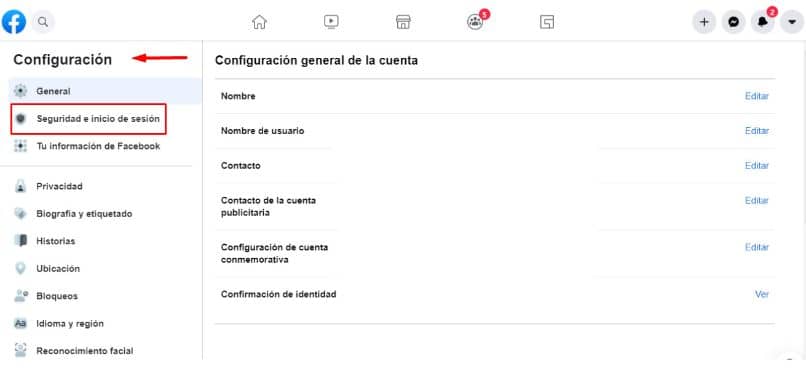 - Une fois sur place, sélectionnez l’option Paramètres et confidentialité> Paramètres. Immédiatement, une fenêtre apparaît avec tous les paramètres Facebook.