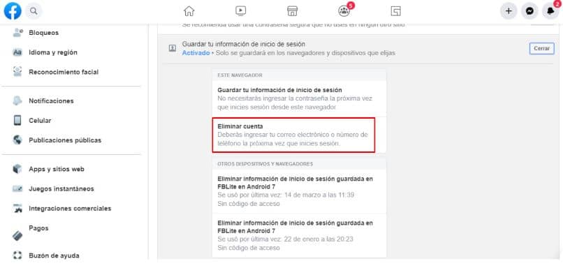 - Si vous souhaitez désactiver l’option, vous devez marquer l’endroit où il est dit Supprimer le compte