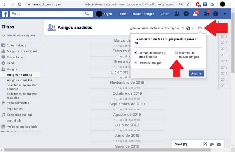 - Lorsque vous cliquez sur cette icône, trois options apparaîtront, vous devez désactiver l’option Rapports de nouveaux amis .