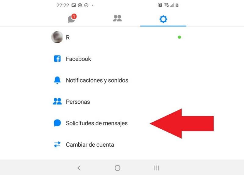 - Presque au milieu, vous trouverez l’option Demandes de message , appuyez dessus.