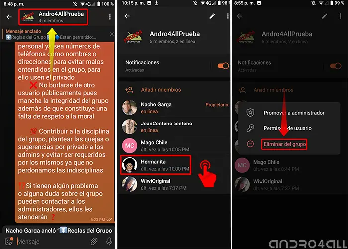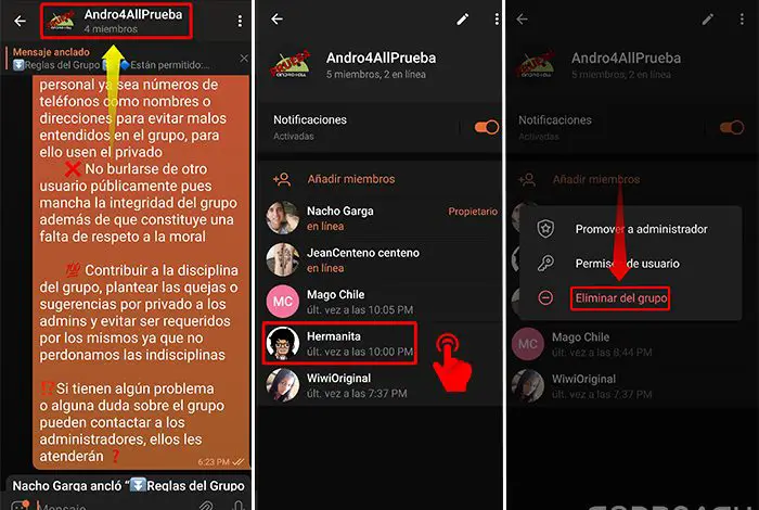 De cette façon, vous pourrez supprimer et ajouter de nouveaux membres aux groupes Telegram à partir d’un PC et d’un téléphone portable, rapidement et en quelques étapes seulement.