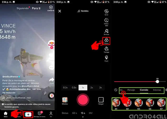 - Dans cette section, il s’agira de vous essayer un par un et, lorsque vous aurez décidé, de commencer à enregistrer la vidéo.