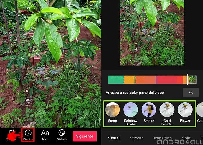 Maintenant, si vous avez déjà une vidéo dans votre galerie mobile, vous pouvez également ajouter des effets de cette manière :