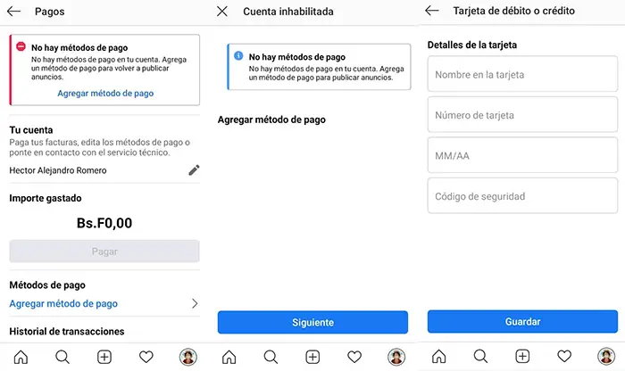 C’est fait! À ce stade, vous devrez entrer les informations de la carte que vous souhaitez lier pour l’utiliser comme moyen de paiement sur Instagram. il! Il est à noter que certaines cartes (même des sociétés que nous avons citées ci-dessus) ne fonctionnent pas sur cette plateforme. Cela dépend également de l’endroit où vous vous trouvez et si votre carte est à jour à ce moment-là.