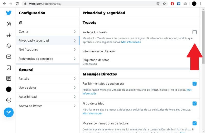Très similaire à ce qui précède, il est recommandé de rendre vos tweets privés , de cette manière tout le monde ne pourra pas les voir, mais uniquement ceux qui les suivent.