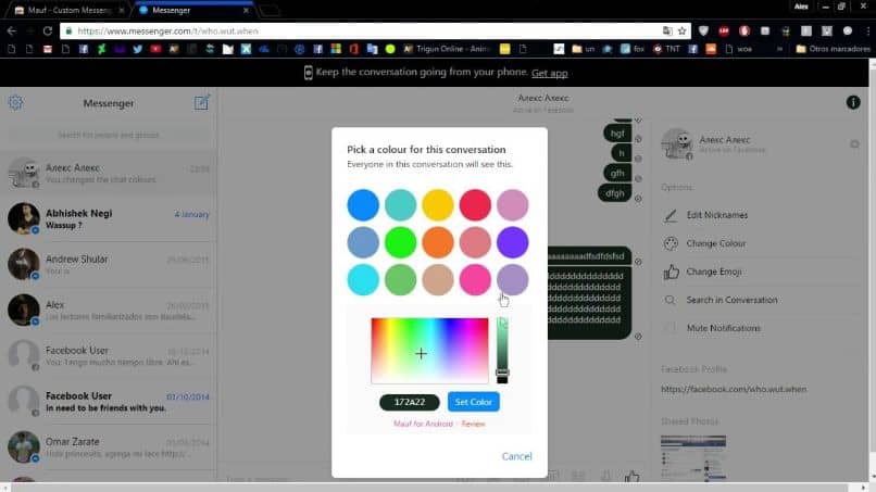Nous reste maintenant seulement de changer la couleur de la barre Facebook, qui est généralement de couleur bleue, pour ce faire , nous clip sur l’autre F . Cette action permettra à une palette de plusieurs couleurs d’apparaître et de la même manière, pendant que le curseur sélectionne chaque couleur, la barre changera. Ensuite, vous devez choisir la couleur de votre goût.