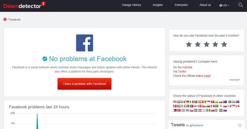 C’est très simple, puisqu’il existe plusieurs outils sur le web pour connaître les chutes et la stabilité des serveurs. Par exemple, dans «Downdetector», vous pouvez voir si la plate-forme échoue ou non. Au cas où c’est le problème, la seule chose que vous pouvez faire est d’ attendre que le personnel de Facebook résolve le problème.
