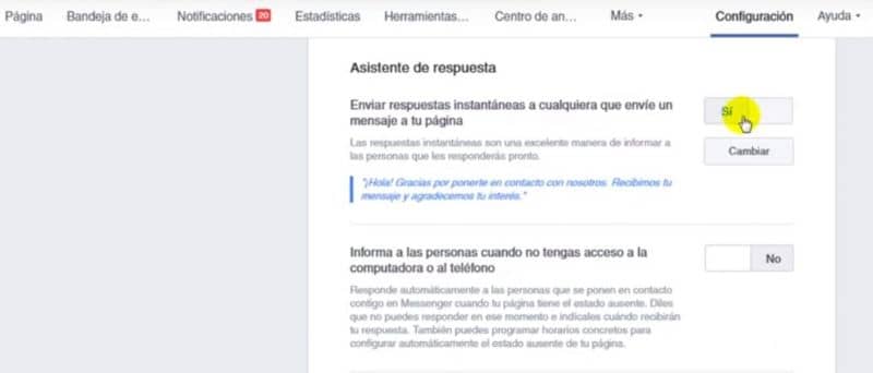 Connaissant déjà les réponses automatiques que vous pouvez créer sur Facebook et de quoi il s’agit, il est temps pour vous de les activer, pour ce faire, suivez ces étapes:
