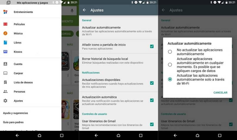 De cette façon, la section choisie s’ouvrira, et dans celle-ci il y a une option appelée » Mettre à jour automatiquement les applications «, vous devez cliquer dessus.