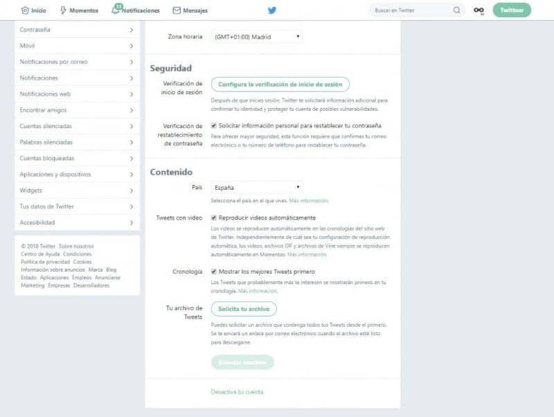 La première chose à savoir est que, malheureusement, Twitter ne permet pas aux utilisateurs de supprimer ou de désactiver leur compte via l’application mobile. Il s’agit d’une mesure de sécurité imposée par ce réseau social, car si vous perdez votre mobile Android ou iPhone, personne ne pourra supprimer votre compte de l’application.