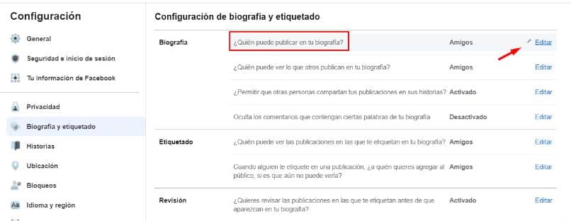 - Dans cette alternative, vous verrez plusieurs options. Parmi eux, qui peut publier dans votre biographie, qui peut voir ce que les autres publient dans leur biographie, cacher des commentaires, entre autres.