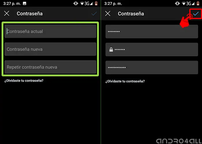 - Enregistrez la modification en appuyant sur la coche verte située en haut à droite et le tour est joué. Avec ce processus, les sessions ouvertes de votre Instagram sur tous les ordinateurs seront fermées.