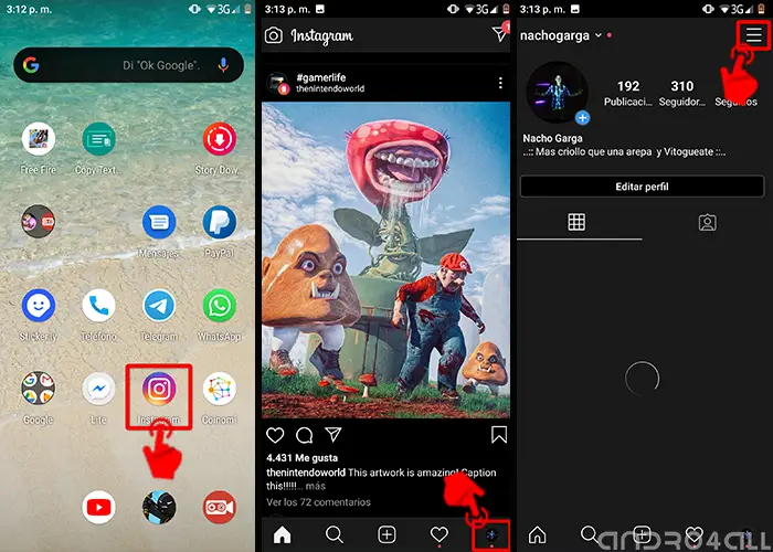 Entrez sur Instagram depuis votre mobile et accédez à votre profil d’utilisateur
