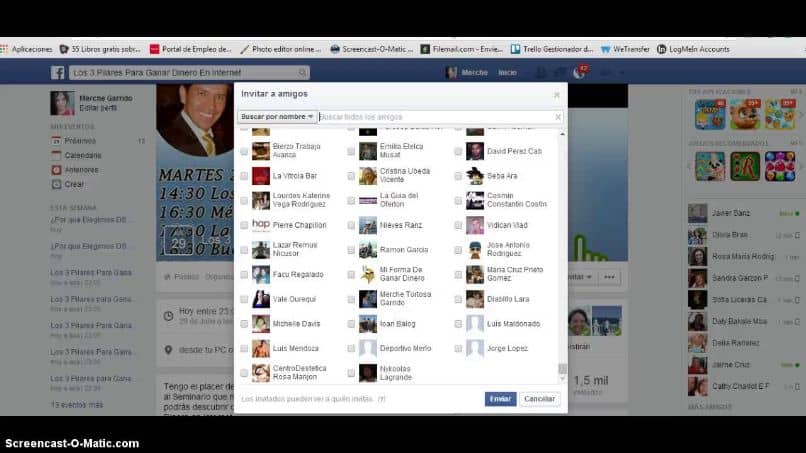 Comme nous voulons faire une invitation à tous nos amis Facebook , nous allons sélectionner l’option Tous vos amis . Cette action fera apparaître tous vos contacts et sur le côté droit une boîte de vérification. Là où vous pouvez sélectionner en faisant un clip dans chaque image ou au contraire comment vous souhaitez inviter tous vos amis, vous sélectionnez l’option pour tout sélectionner.