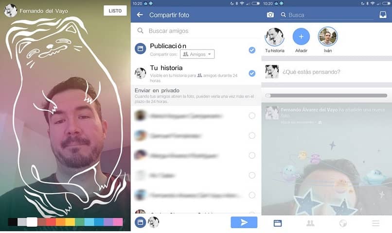 Pour insérer des autocollants dynamiques avec des effets dans l’une de ces deux options, vous devez accéder à l’application Facebook mobile. Là, se trouve la section des histoires, et dans la case où la nôtre est censée aller, le symbole « Plus » est sélectionné .