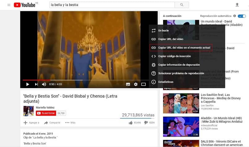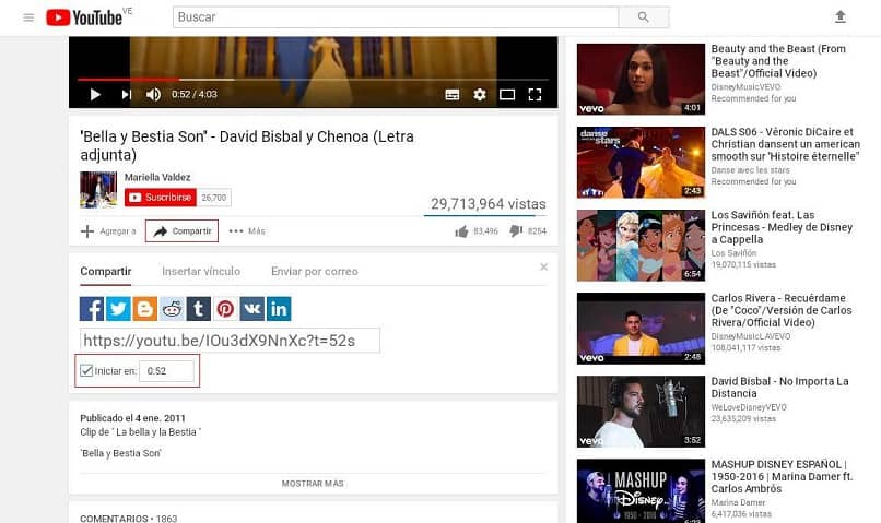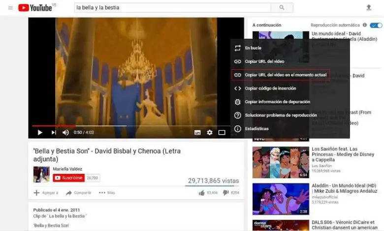 Que nous devons marquer pour qu’il apparaisse à partir de ce moment , la minute et la seconde exactes dans lesquelles vous voulez que la vidéo commence et automatiquement le lien sera changé et si je veux le partager sur les réseaux, par e-mail ou sur mon site Web, il nous frappons avec Ctrl + V.