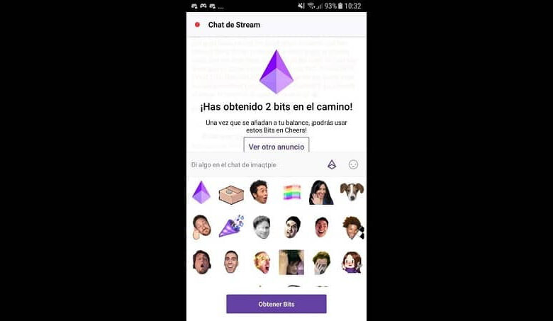 Si, par contre, l’icône animée n’est pas présente, cela signifie que l’émetteur n’a pas activé la fonction. Ensuite, vous devez cliquer sur l’icône Bits, une fenêtre apparaîtra et vous devez cliquer sur l’ option pour obtenir des bits . Cela permettra d’afficher une annonce, vous pouvez gagner beaucoup de Bits de cette façon, mais chaque annonce allouera entre 5 et 10 Bits à votre compte.