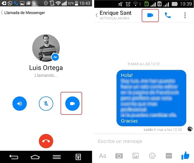 Après cela, il vous suffit de trouver le chat ou la personne avec qui vous souhaitez partager l’appel vidéo et une fois dans le chat, il vous suffit d’aller en haut à droite où vous trouverez une caméra. Il ne vous reste plus qu’à le toucher et à attendre que l’autre personne accepte notre invitation.