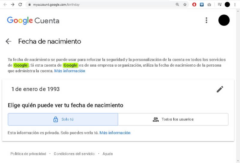- Vous devez maintenant cliquer sur l’option d’édition dans Google. Vous serez redirigé vers les paramètres de votre compte Google. Dans un premier temps, vous serez autorisé à changer de nom, mais ce qui nous intéresse, c’est l’âge, puis cliquez sur Annuler.