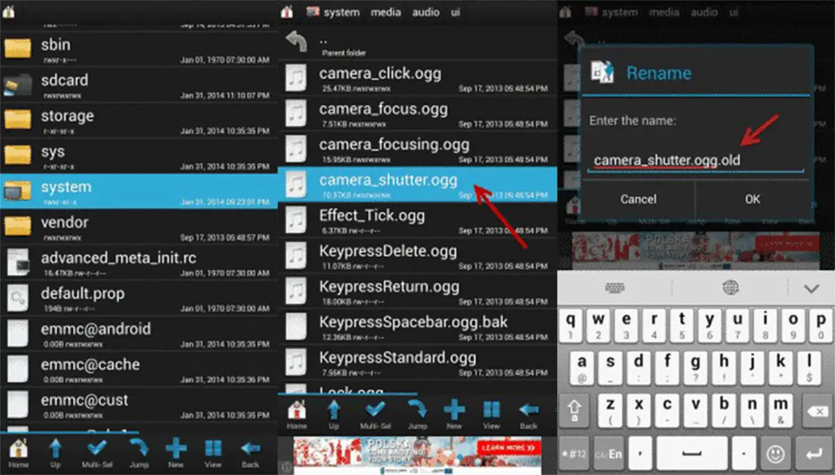 - Cherchez maintenant le fichier Shutter.ogg ou camera_click.ogg selon le smartphone et la version d’Android