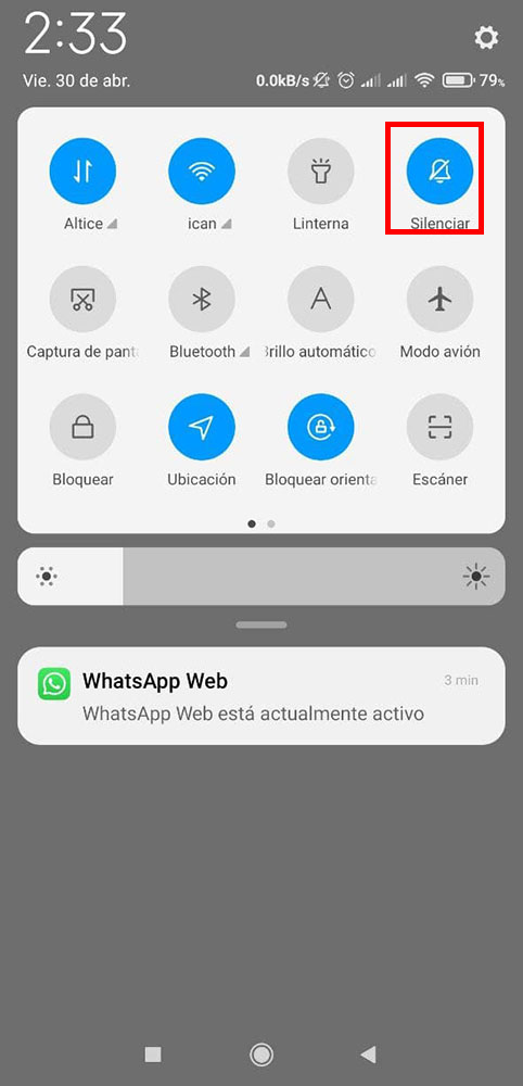 - Sélectionnez l’icône en forme de cloche pour passer en mode silencieux