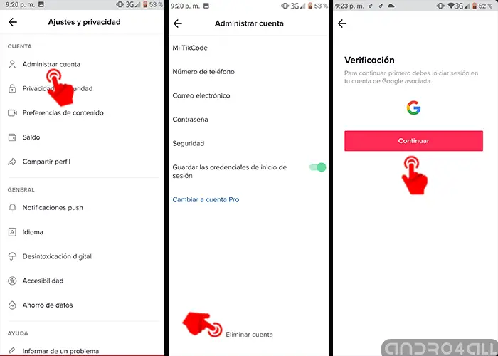 - Plus tard, après avoir confirmé votre mot de passe, il vous avertira via un rapport des conséquences de la suppression de votre compte TikTok, si vous êtes d’accord, il apparaîtra à la fin. Continuer?.