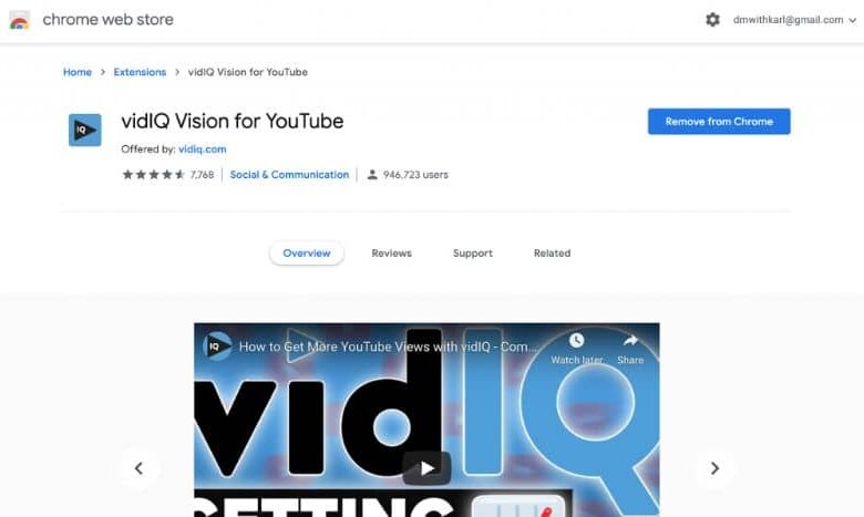 VidIQ Vision est une extension très sécurisée pour installer et créer un lien vers votre chaîne, en fait, les youtubers et la plate-forme elle-même le recommandent.