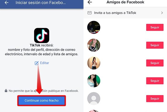 Connectez-vous avec votre compte Facebook et commencez à voir qui a TikTok