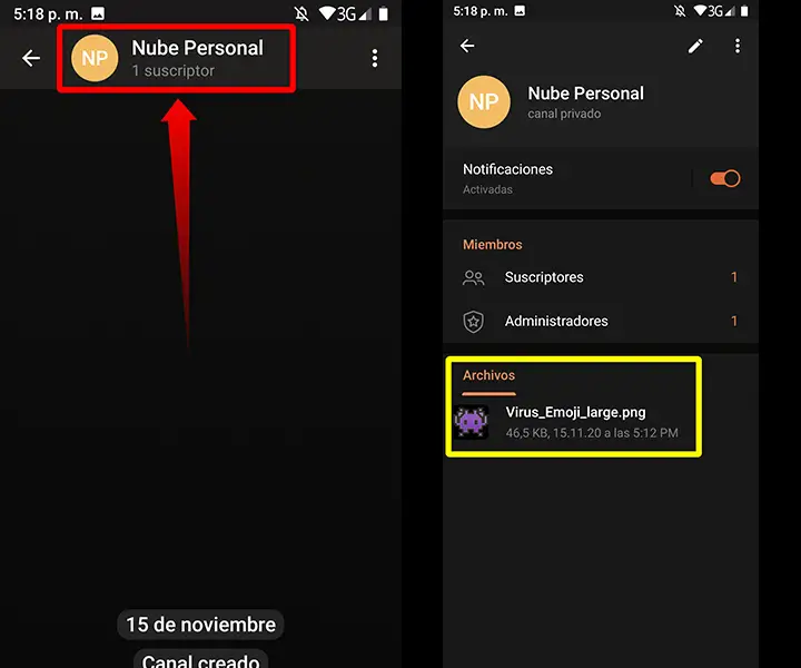 - Ouvrez votre canal cloud personnel privé sur Telegram.
