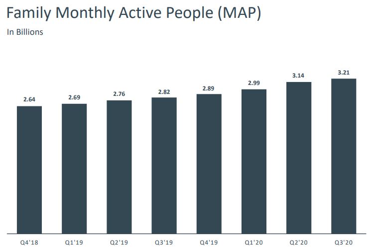 Un fait curieux est que cette fois-ci, Facebook a partagé les données sur les «utilisateurs actifs quotidiens de la famille» avec lesquels il montre tous les utilisateurs uniques de sa famille d’applications, qui comprend Facebook, Instagram, WhatsApp et Messenger, qui a réalisé un total de 3 210 millions d’utilisateurs.
