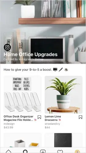 Par exemple, dans la collection «Améliorations pour votre bureau à domicile» présente une collection de produits qui sont parfaits pour décorer une étude à domicile. De plus, les utilisateurs peuvent découvrir toutes les marques abordables qu’ils suivent sur Instagram en appuyant sur le bouton «Voir tout», situé à côté du carrousel de marques.