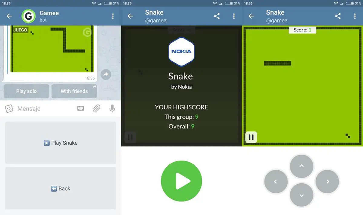 Jouez au serpent Nokia classique de Telegram en quelques secondes. Tapez simplement Snake dans le moteur de recherche de l’application et commencez à profiter!