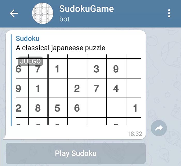 Vous aimez tester votre cerveau avec un bon jeu de sudoku? Alors c’est le jeu Telegram parfait pour vous. Recherchez simplement Sudoku Game dans le moteur de recherche Telegram et résolvez toutes les énigmes que vous souhaitez.