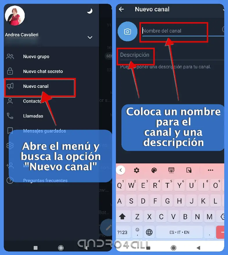 2. Ensuite, l’écran s’ouvrira et vous devrez y placer les informations que Telegram vous demande: Nom de la chaîne et une brève description.
