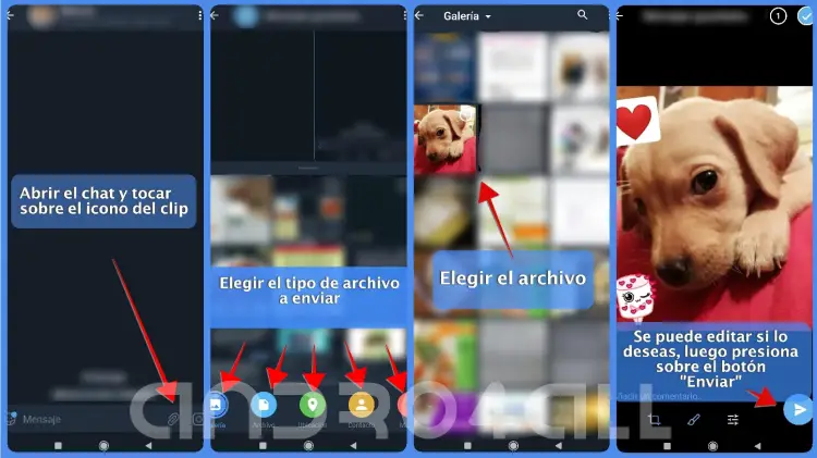 Bien que dans WhatsApp, vous puissiez également le faire, vous devez toujours tenir compte de ne pas dépasser 100 mégaoctets, mais dans Telegram, ce problème n’existe pas car nous pouvons envoyer des documents jusqu’à 1,5 Go sans problème.