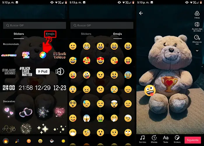 Le processus d’ ajout d’émojis aux vidéos TikTok ne nécessite pas de maîtrise avancée en programmation, de nos jours tout utilisateur est capable de gérer la plate-forme et de le faire par lui-même. Voici ce que vous devez faire pour les mettre: