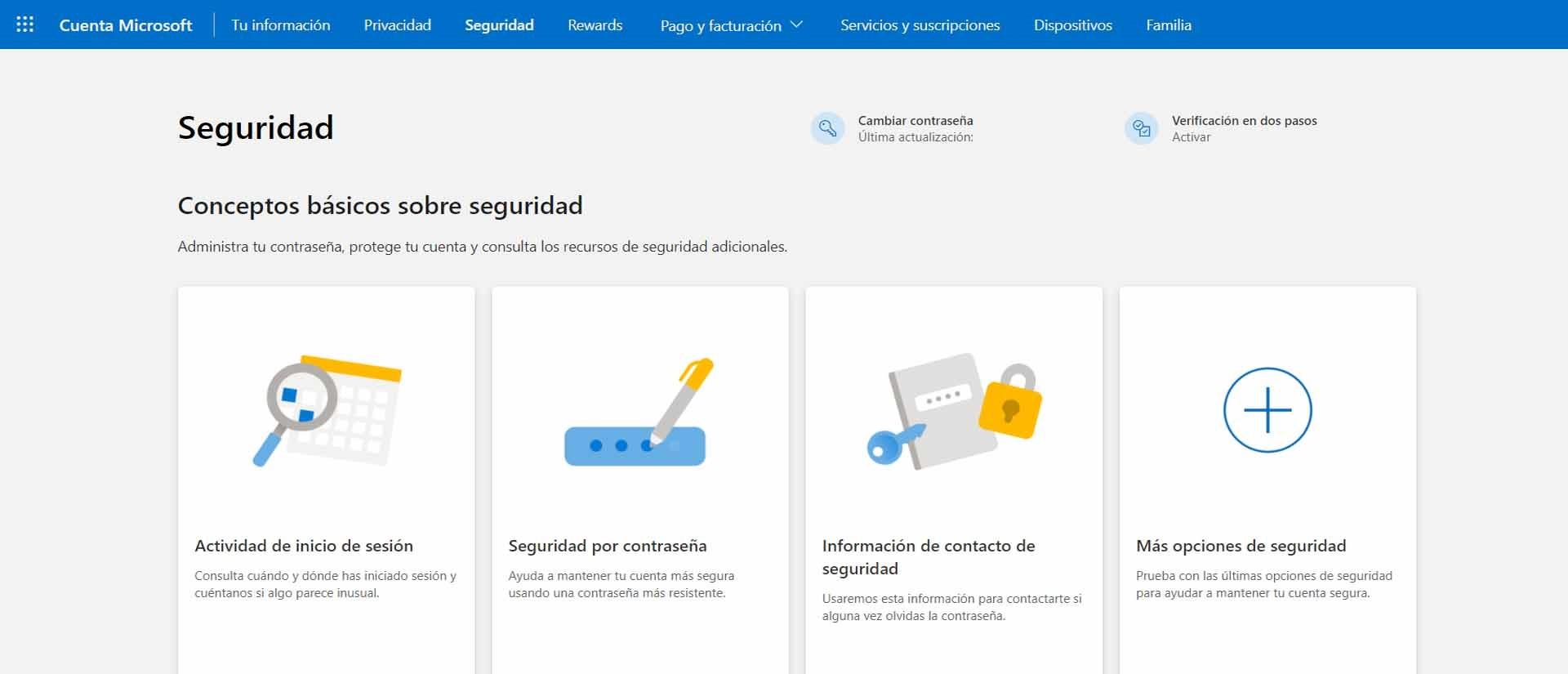 Enfin, nous avons l’option OneDrive. Ici, nous devrons nous connecter à notre compte Microsoft , nous allons dans la section sécurité et là nous cliquons Activer la vérification en deux étapes, qui apparaît à droite et au-dessus.