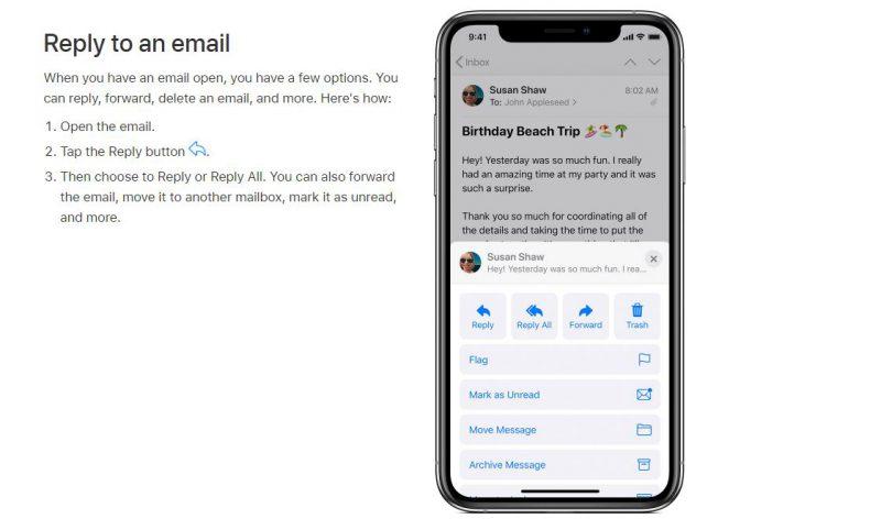 De nombreuses personnes qui utilisent l’iPhone utilisent le client de messagerie par défaut pour gérer leurs messages au quotidien. L’une des caractéristiques de Mail sur iOS est que l’interface est très propre et qu’elle ne contient quasiment aucune information en petits caractères. Regardons une capture d’écran de référence ci-dessous sur le site officiel d’Apple :