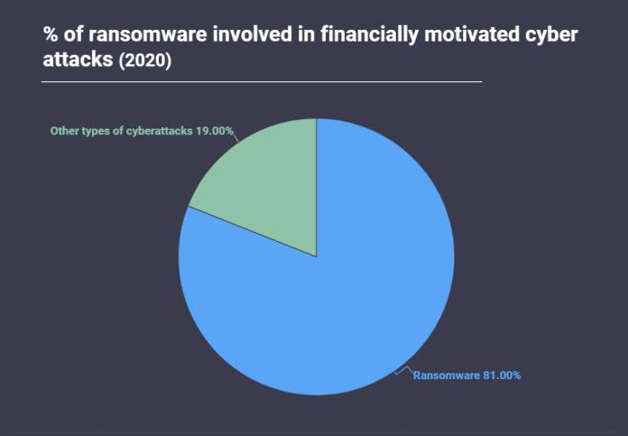 Sans aucun doute, les attaques de ce type ont connu une augmentation considérable. Selon une étude réalisée par les experts en sécurité d’Atlas VPN, 63% de toutes les attaques en 2020 étaient motivées financièrement. Sur ce pourcentage de 63 %, dont l’objectif principal est financier, 81 % étaient des attaques de ransomware.