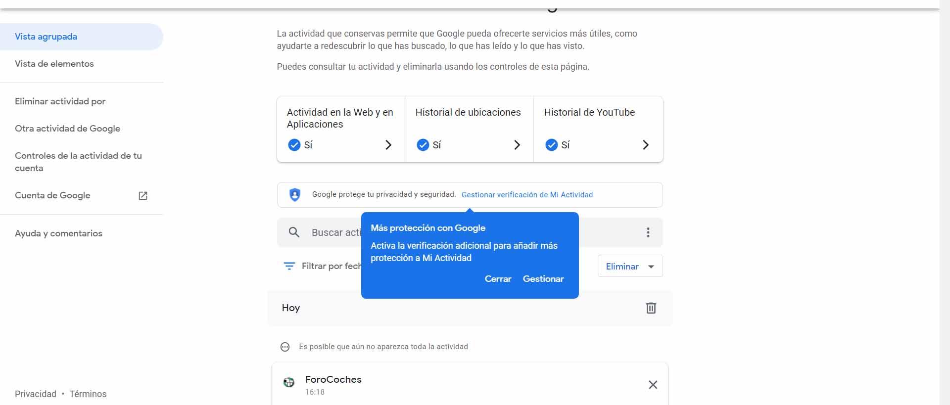 A partir de ce moment, Google nous demandera le mot de passe du compte afin de visualiser l’historique des activités. Si, par exemple, quelqu’un a accès à notre ordinateur ou si nous laissons le compte ouvert sur l’équipe de travail, il serait nécessaire de saisir le code d’accès pour afficher l’historique.