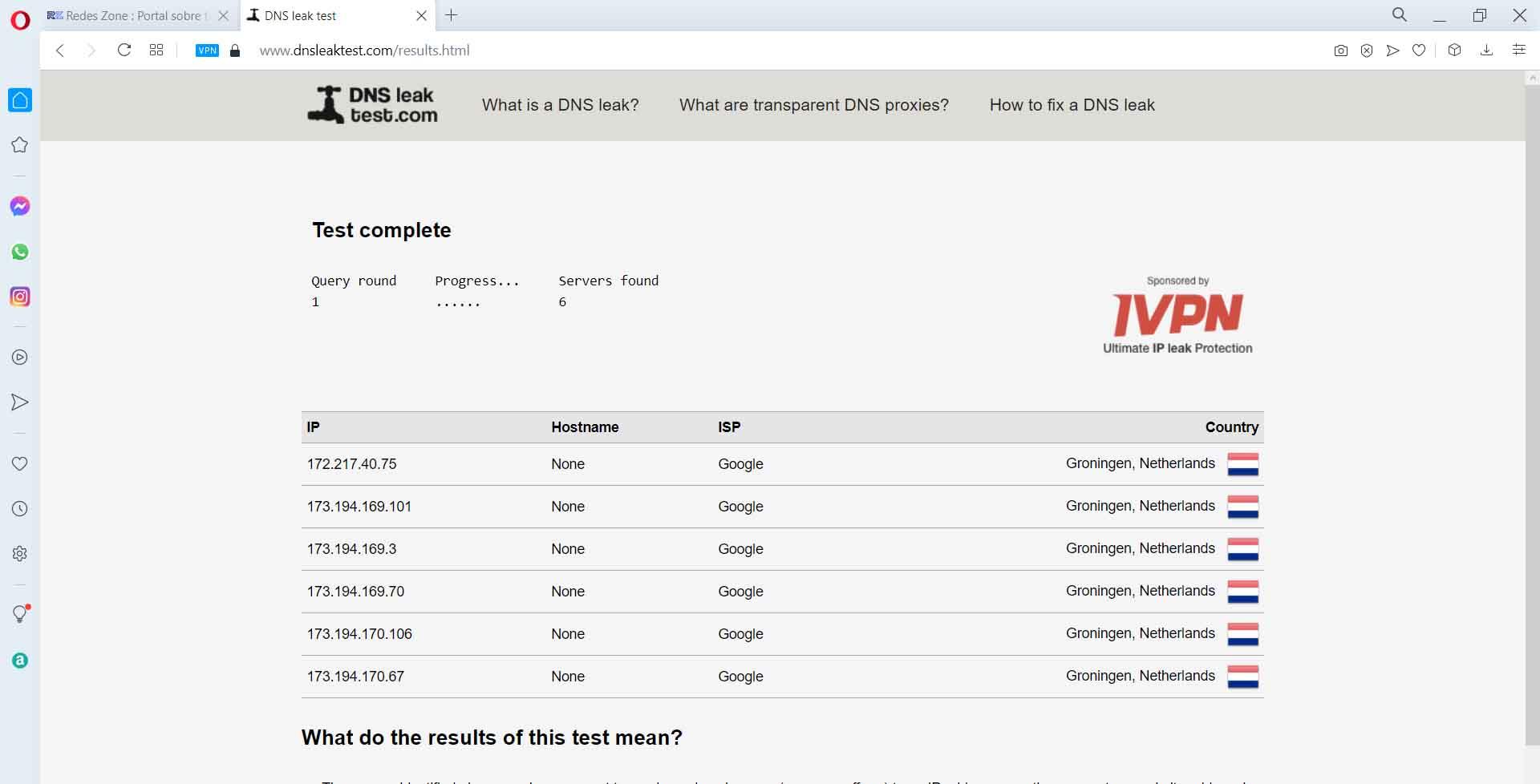 Heureusement, nous avons certains outils qui nous aident également à vérifier le bon fonctionnement. On peut simplement faire un test et voir si le DNS fuit ou si, au contraire, tout fonctionne correctement.